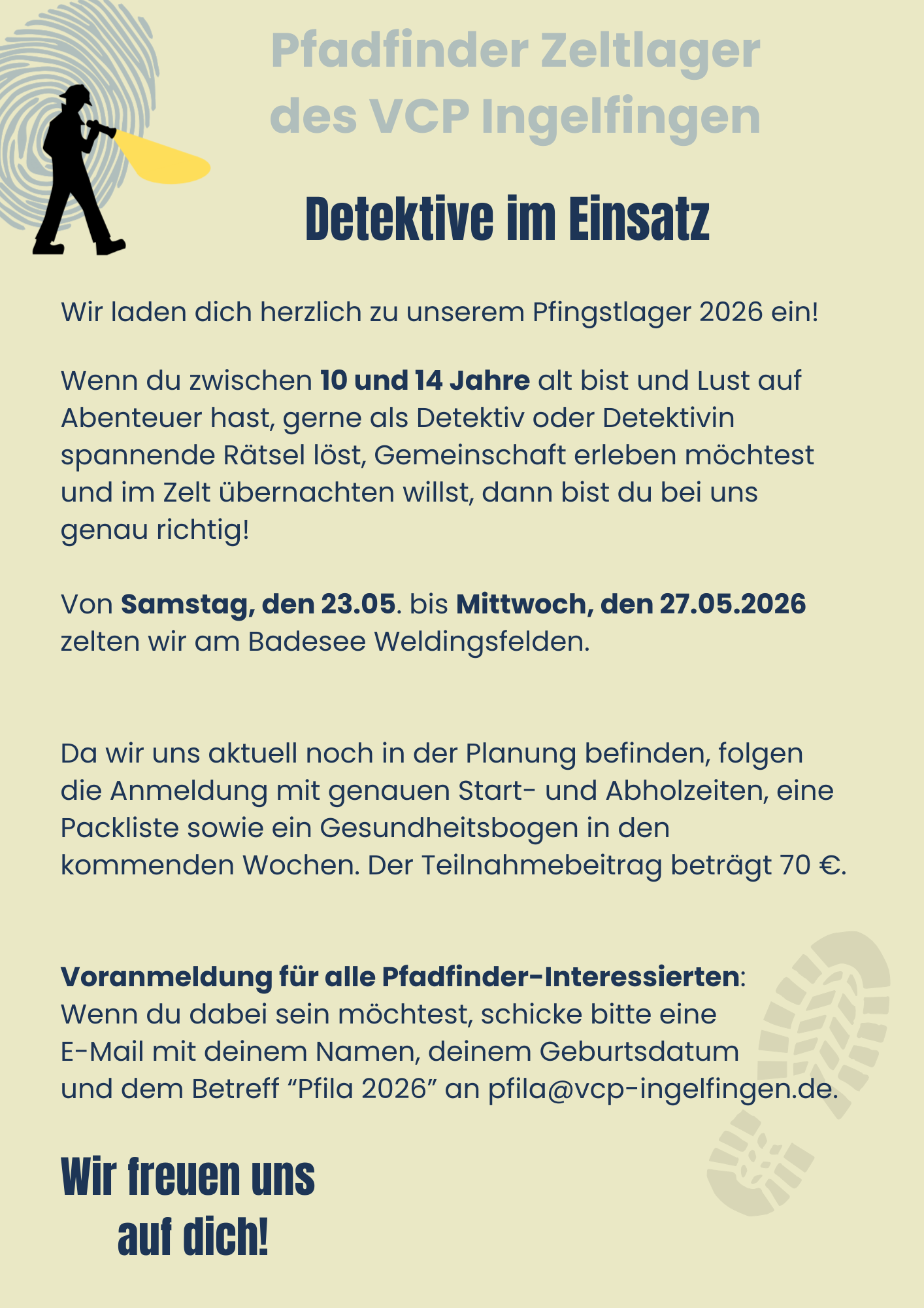 Das diesjährige Pfingstlager findet vom 23.05. – 27.05.2026 statt.